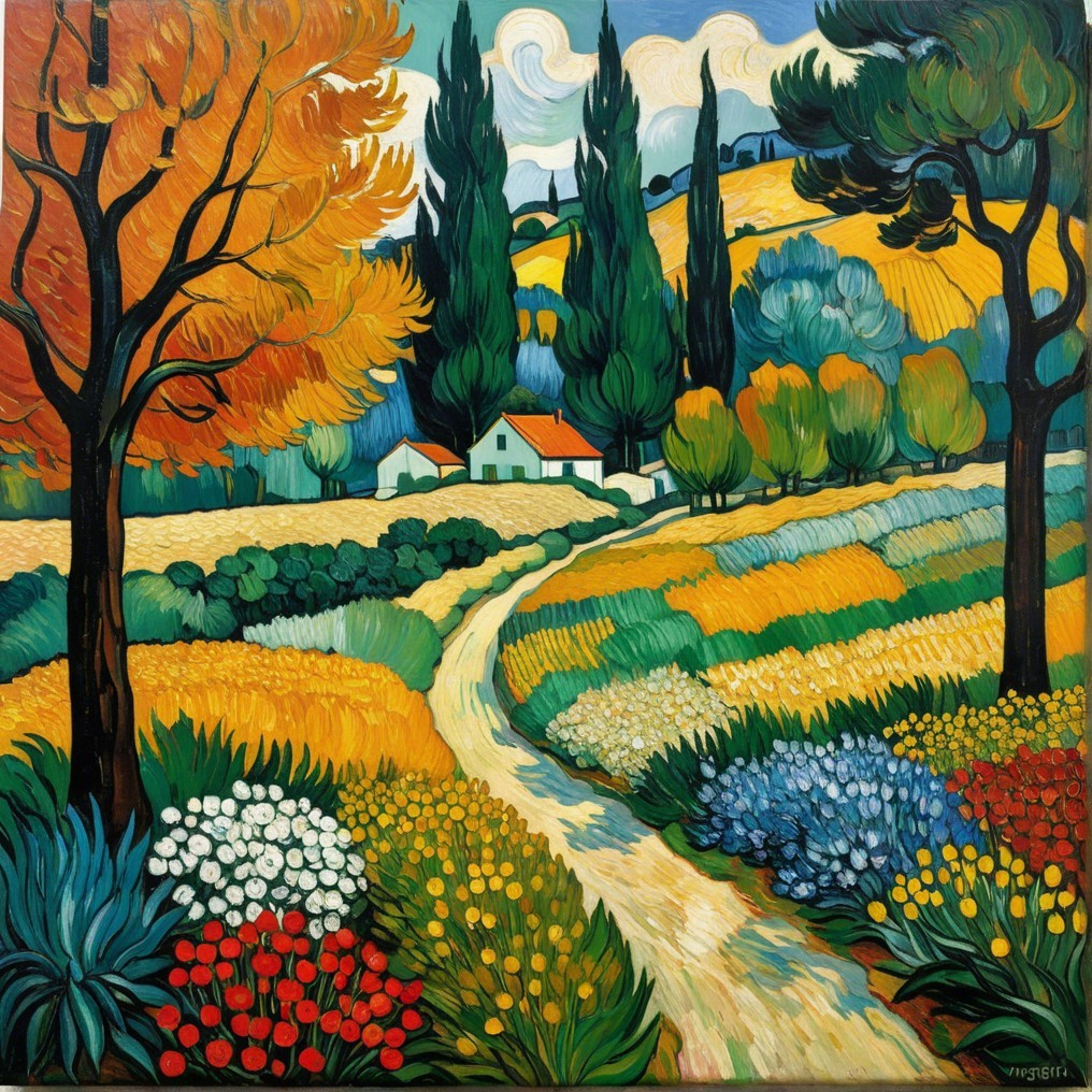 Influencing Artists: Vincent van Gogh, Claude Monet, Henri-Edmond Cross, Gustav Klimt (landscape works), Leonid Afremov