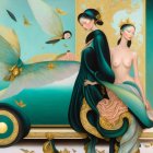 The image features a surreal woman in a flowing teal gown, surrounded by whimsical fish and abstract shapes. The vibrant colors and intricate patterns create a dreamlike atmosphere.