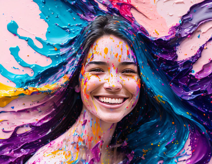 A happy painting of a woman covered in paint! All base images made by me.