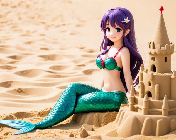 A vibrant anime girl dons a strapless coral-pattern swimsuit, showcasing her playful spirit. Her bright eyes and lively expression reflect a joyful summer day by the beach, radiating fun and confidence.