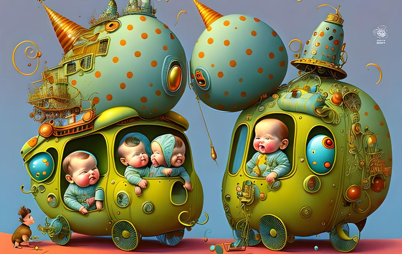+ Prompt:Babies doing goofy things, by Terry Gilliam, whimsical, very cute, vintage Terry Gilliam illustration, cartoon + comic illustration style, funny, surreal vibe, no signatures