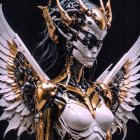 The image showcases a striking robotic figure adorned with golden accents and intricate details. It features majestic wings, a sleek armor design, and an ethereal beauty that blends technology and artistry.