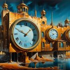 The image depicts a surreal landscape featuring oversized clocks integrated into a whimsical castle. Its vibrant colors and dreamlike architecture evoke a sense of time's fluidity and imagination.