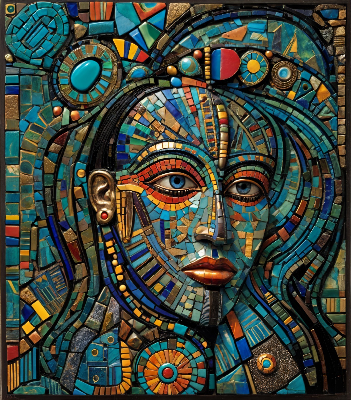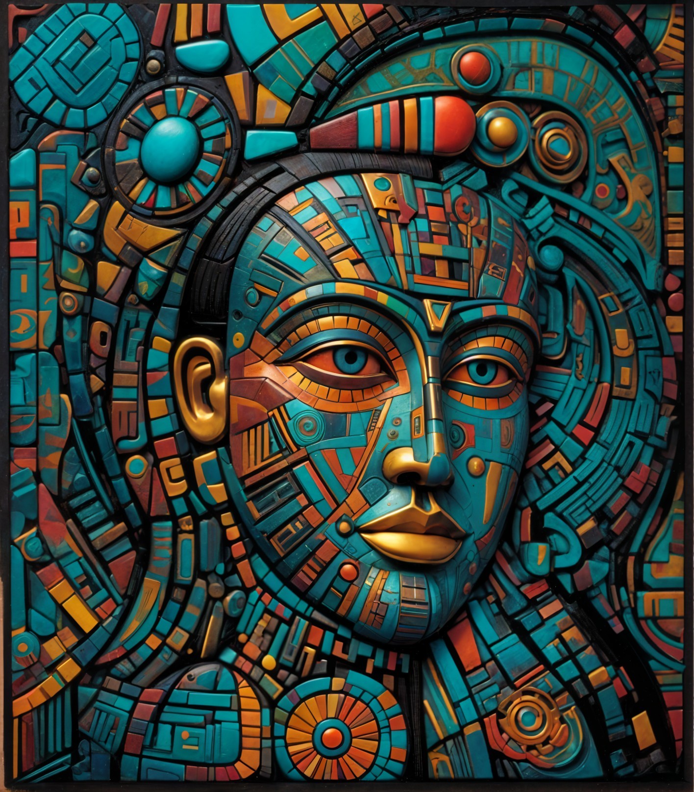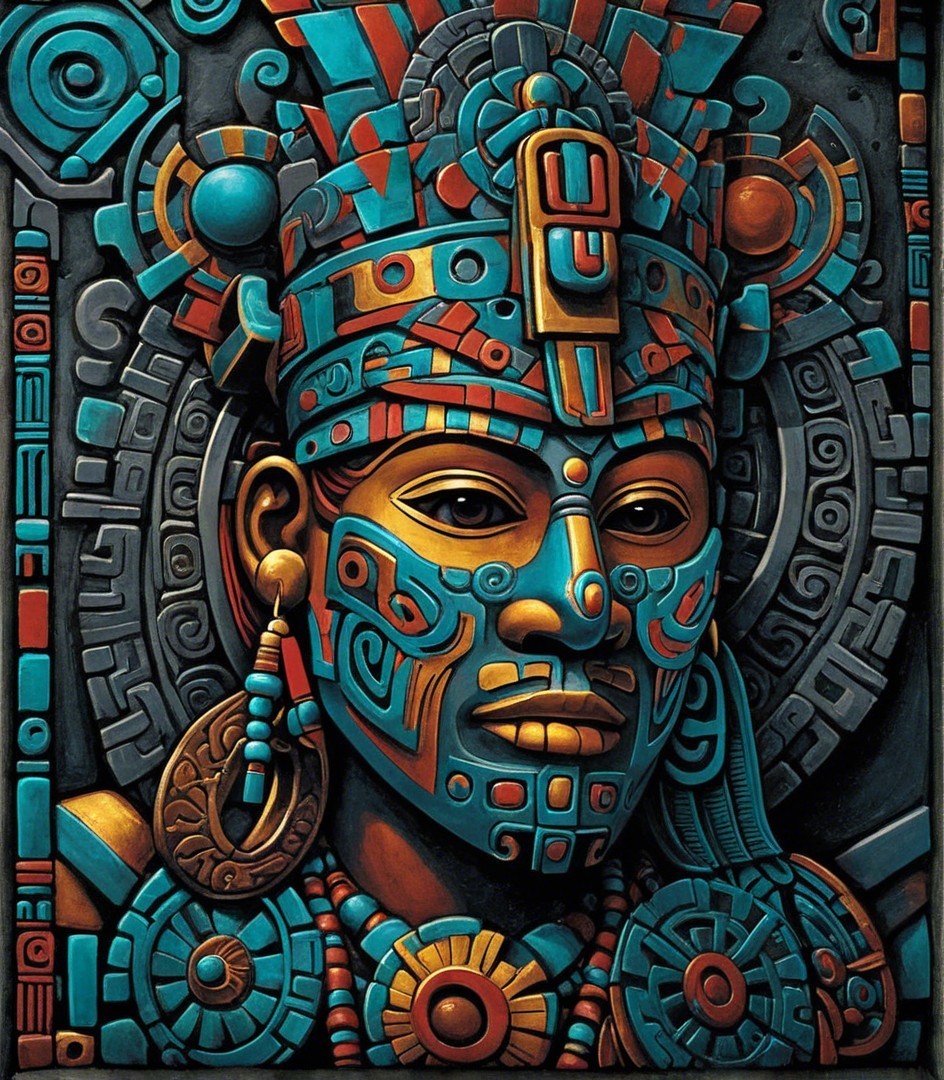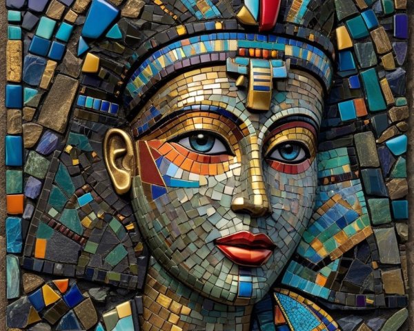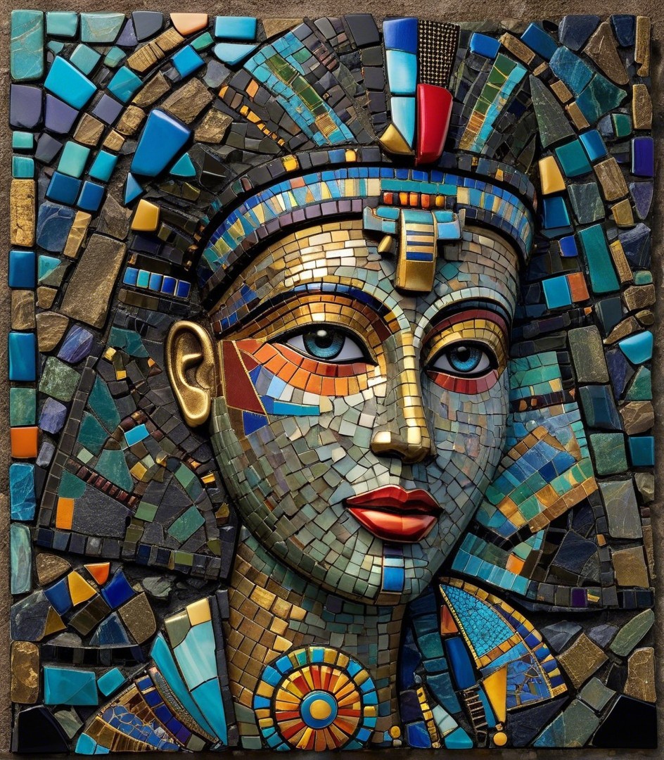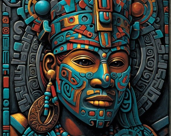 The image features a striking figure with long, textured hair, vibrant red eyes, and a dark hood. Surrounding the figure is an abstract, colorful background that enhances its surreal presence.