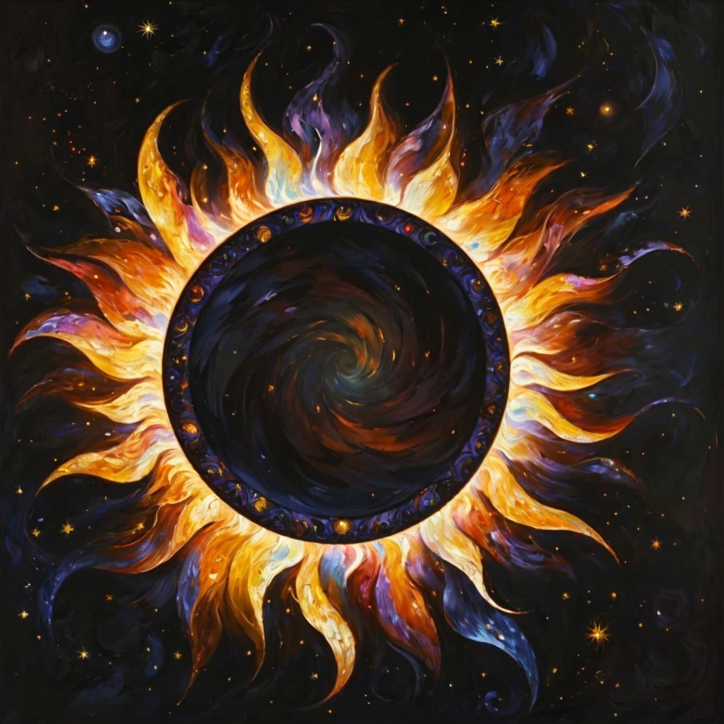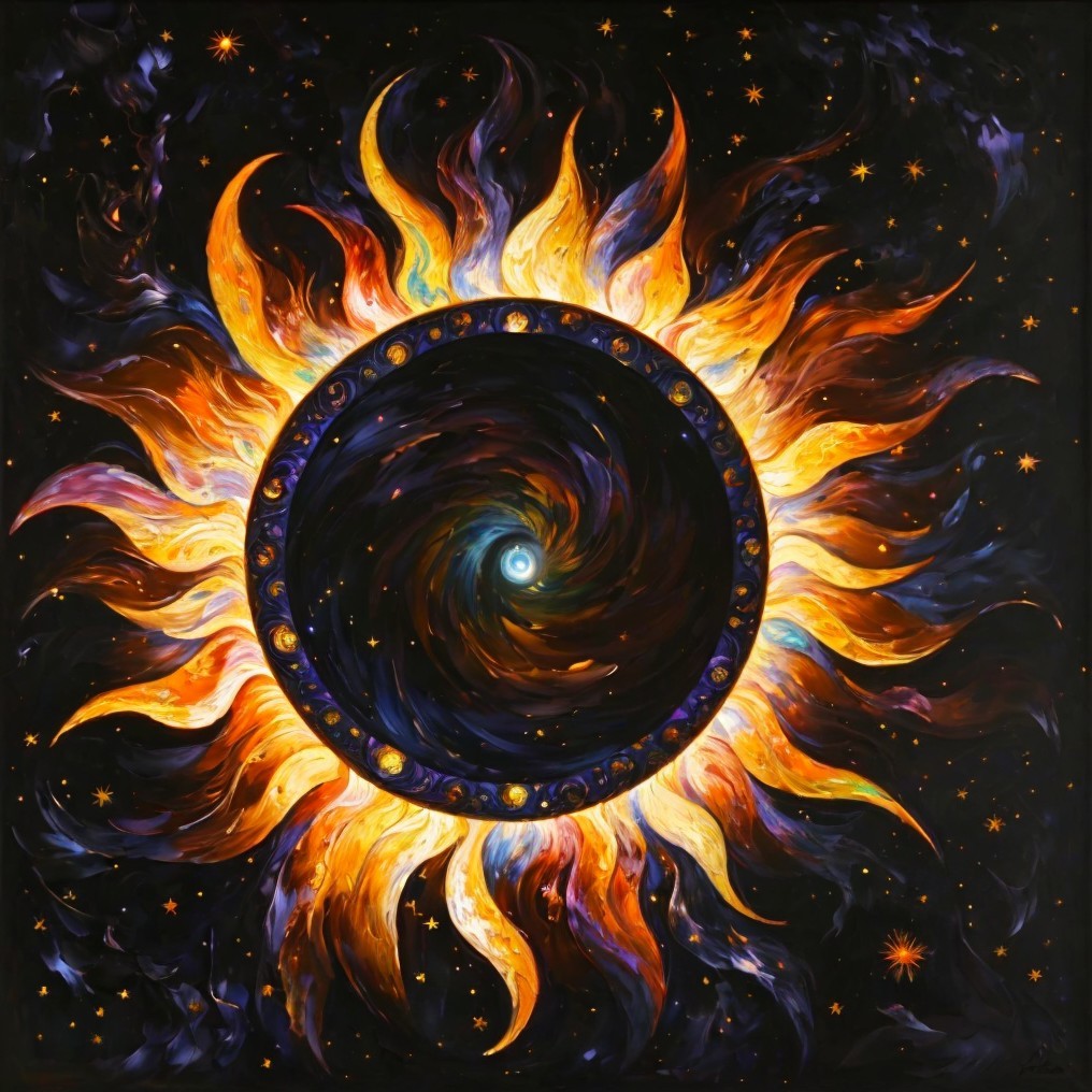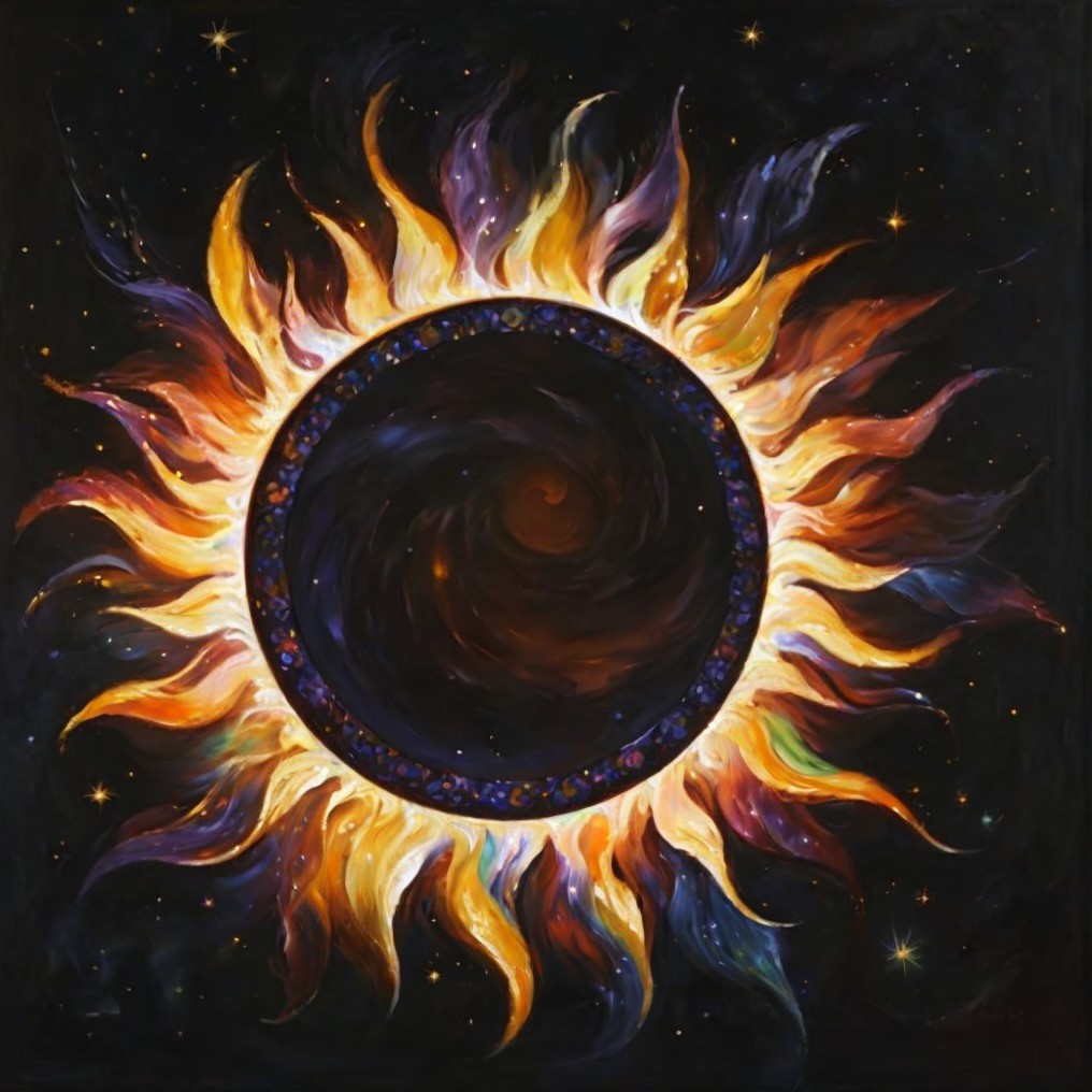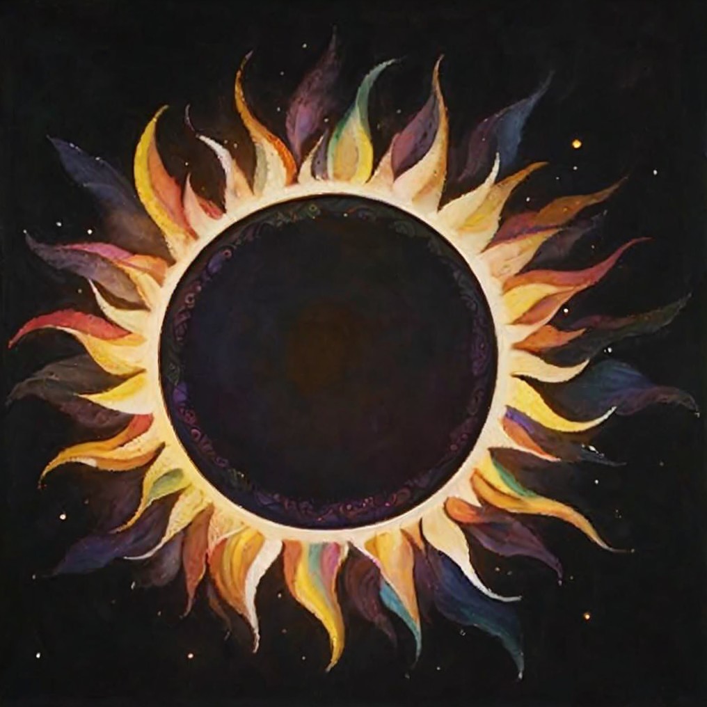 Extremely detailed, intricate and ornate painting of a solar eclipse