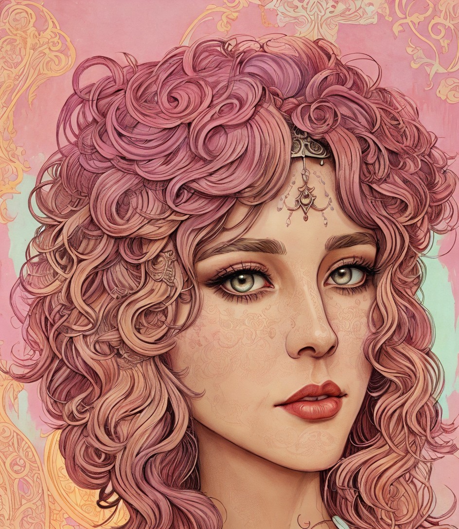 Handsome priestess with curls, colored ink drawing, digital stylized artwork in withered pale colors, high detail, muted colors 0.8, intricately detailed, american gothic 1.7, dimmed dynamic lighting, art nouveau, (steampunk (triadic color scheme yellow, red, burgundy) 6:11), inkpunk, hues,pinkish background in Art Nouveau by Edward Hopper, perfect handsface, ornamental details in vivid colors, Watercolor details, moving pose, (dark beige background with tints of WilliamTimlin, vivid illumination, intricate surrounding), tints of 1970s advertising art) 7:11), detailed plasticity, dreamscape, cinematic wash, grain, Schreger lines, luminous plasticity, 3d effects, encoustic strokes, spiritual essence, embossed strokes, candyfloss flares, anisotropic filtering, shadow mapping 1.3, volumetric lighting, daguerreotype photography style on old paper, cinematic postprocessing, tints of Margaret Keane and Marsden Hartley, stylized details in style of alphonse mucha, beautiful composition 1.9, coffinwood 1.7, dethereal details of ornate, maximalism, radiance, stacked-up perspective,