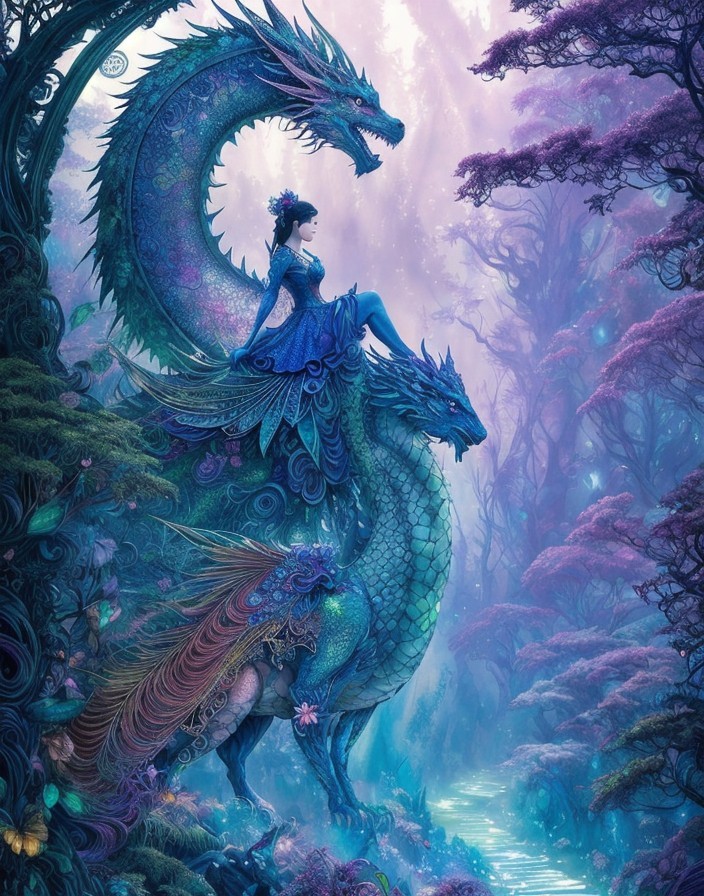 Prompt: "the beautiful cheshire princess has found joy, she is protected by the mythical rainbow dragon. Whimsical Forest background. Android Jones, James Jean, takato yamamoto, Arthur Rackham. watercolor, volumetric lighting, maximalist, concept art, intricately detailed, elegant, expansive, 32k, fantastical, golden ratio principles, haunted, glass sculpture, honeycomb patterns, art by makoto shinkai, conrad roset. 3d, iridescent watercolors ink, polished finish, gradient chrome colors."
