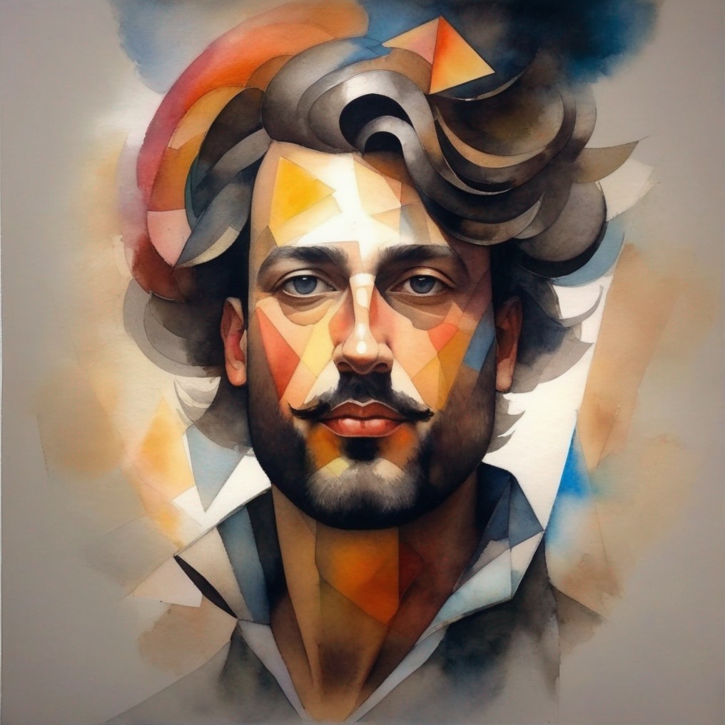 Colorful Cubist-Style Portrait of a Man with Mustache