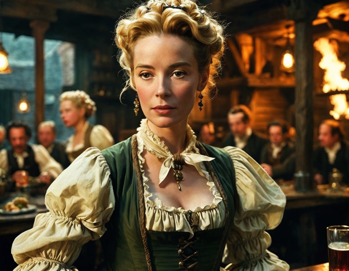 For this one, I started with an image I made with the Lisa AI app, requesting Tilda Swinton in the title role. Then when I put it in here as a base image, I asked for Jane Mansfield. The final step, where I put in 25% change in order to get this into the Feeds, was just the generic tavern wench. And you can see she looks more like the girl you get when you just ask for a pretty girl on Deep Dream.