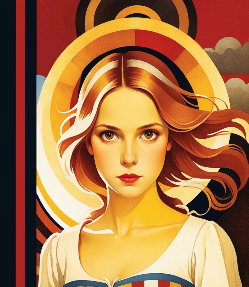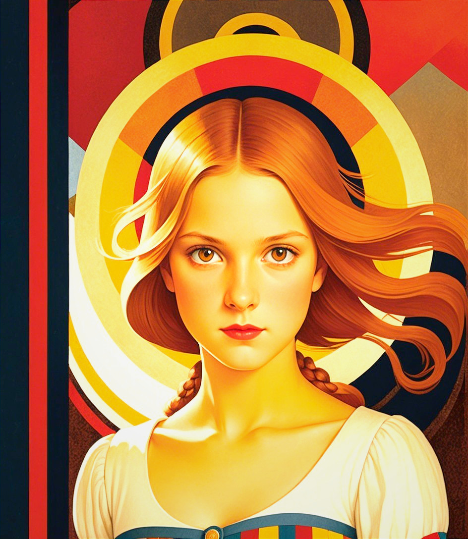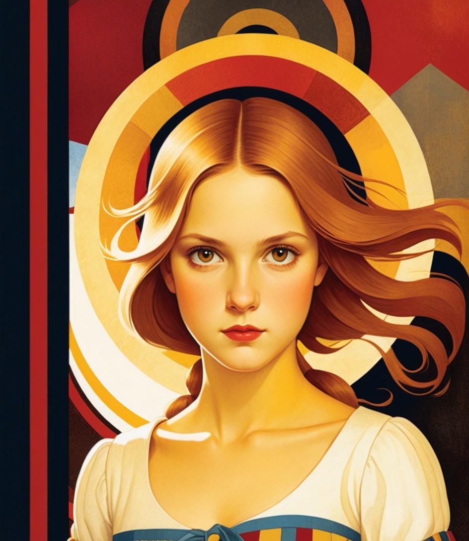 + Prompt:Storybook illustration portraiture by kate greenaway and elena balbusso, teselated, american gothic 1.9, triadic color scheme beige yellow red, stippled, upper body portrait of juvenile brown haired enchantress with devilish eyes, hues, high contrast for bright colors, frantically, epic, slightly exaggerated features, Color spaces, Flares and clouds, red and beige pastel, brightness 1.9, gothical, dark fantasy, colored ink drawing in warm colors, high detail, pastel tones 0.8, intricately detailed, anglo gothic 1.7, cottagegore, dappled lighting, grunge, action painting, (steampunk (triadic color scheme green, ochre, burgundy) 6:11), background with gradient colors by Susan Seddon Boulet, 3 layers of dof, blotting, muscular, sculpted, moving pose, (colorful background with tints in chiaroscuro lighting, intricate surrounding), tints of 1990s academical art) 7:11), plasticity 1.6, luminosity, 3d effects, visible hatching,impasto tempera in intricate encaustic strokes, dyed, spiritual essence, rushing flares, anisotropic filtering, shadow mapping 1.3, dynamic lighting 1.2, stylized anthotype print on old paper, colorful yam, dreamscape, grain, magical realism, erotic essence, alcoholic inkpunk 1.8, anisotropic filtering 1.7, colorful iridescence 0.7, hues, plasticity 1.6, complexion 1.2,, brightness 1.9, ambient occlusion 1.2, shadow mapping 1.3, parallax occlusion 1.2, dynamic lighting 1.7,colorful iridescence, raytraced shadows 1.8, radiance, divisionism, psychedelic psychpomp scene, victorian decay, quilling, quaint, eerie, occult, 3 layers of dof, foampunk, sweaty, crisp quality, octane render illustration 1.5, tints of comic book art 1.7, grunge, uhd hdr, luminosity 1.3, dramatic lighting from top to centre, dreamscape, retropunk 1.9, concept art, overall composition by William Bradley,high stylization, reminiscent of folded paper style, elegant, fantastical, very colorful. Flares and clouds, Shades of :Palatinate, French Mauve, Rose Red patchwork,