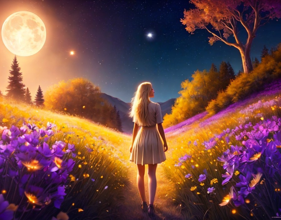 standing in a meadow full of magical flowers