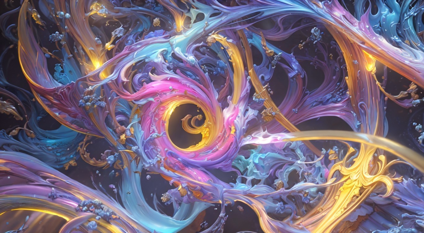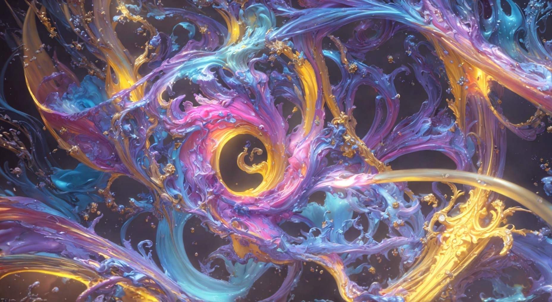 A vibrant swirl of colors with a dynamic, fluid texture, suggesting an abstract, artistic creation.