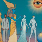 Surreal Scene with Blue-Skinned Figure in Egyptian Attire