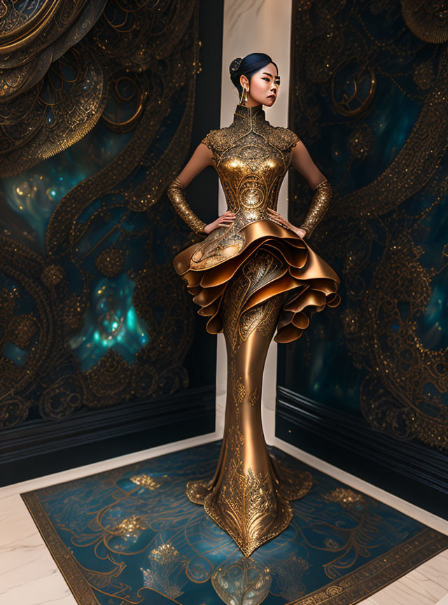 Gorgeous woman whirling twirling dervish in filigree.