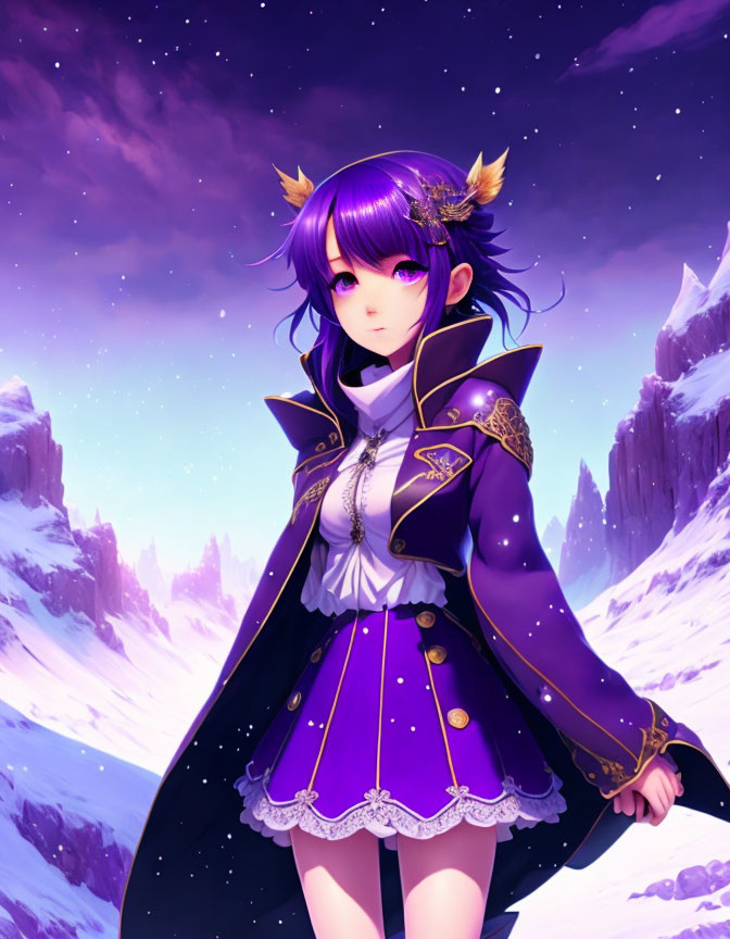 Prompt: "A purple eyed girl dressed in purple skirt purple jacket and black leather boots wielding a magic staff exploring an icy mountain, detailed 3D anime style, perfect anatomy, perfect face, studio Ghibli, Makoto Shinkai"