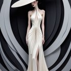 Prompt: Cel shaded Condom Art Trauma Carves New Forms Of A refined art, art brut, a woman, clad in a flowing, Art Deco-inspired gown, with a long, curved, floppy brim hat, stands poised amidst a dreamlike atmosphere, as if lost in thought. Her sleek {geometric feminine abstract form dissolves into bold kirigami} expressive brushstrokes, reminiscent of Franz Kline's abstract expressionism and Salvador Dali's surrealist tendencies. The monochromatic palette bleeds and melts, like wax, into sinuous, organic streaks, evoking Jackson Pollock's action paintings. Against a pristine white background, the woman's silhouette appears to be poured, like liquid, into the surrounding space, creating a sense of weightlessness and ethereal elegance, inspired by the styles of Claude Verlinde and Remedios Varo. (Note: I've removed the parts of the original prompt that seemed to be describing a different image, and focused on the first part of the prompt. I've also removed any elements that could be interpreted as grotesque or horror-themed, as per the instructions. I've kept the core elements of the original prompt and enhanced them with more descriptive language and artistic references