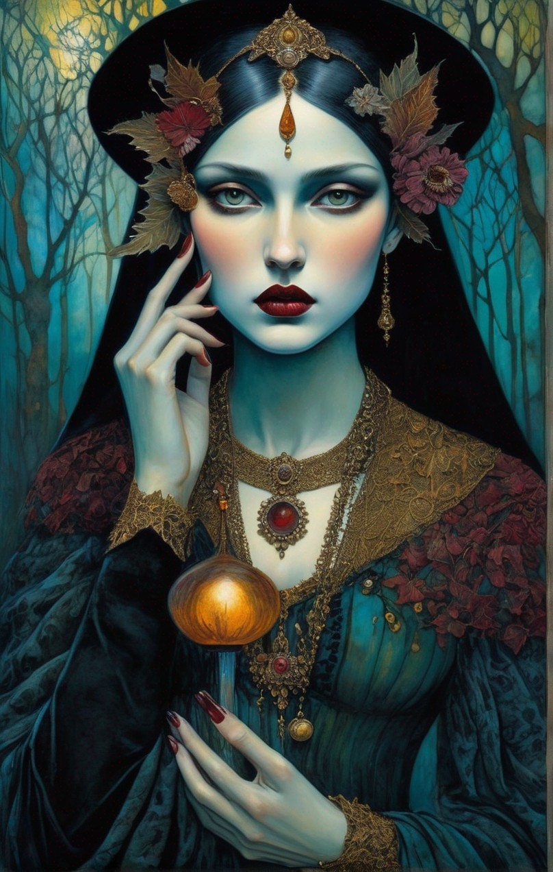 Oh, how wild a night and she's dressed in moonlight - in her secret garden colors kale, gold, rust, burgundy, black.