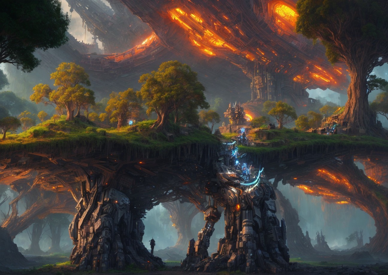 A futuristic wold built and inhabited by robots. Started out as a Deep Dream image of an ancient underworld with humans and witches