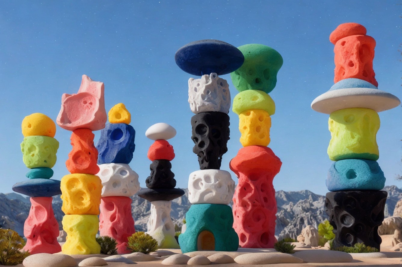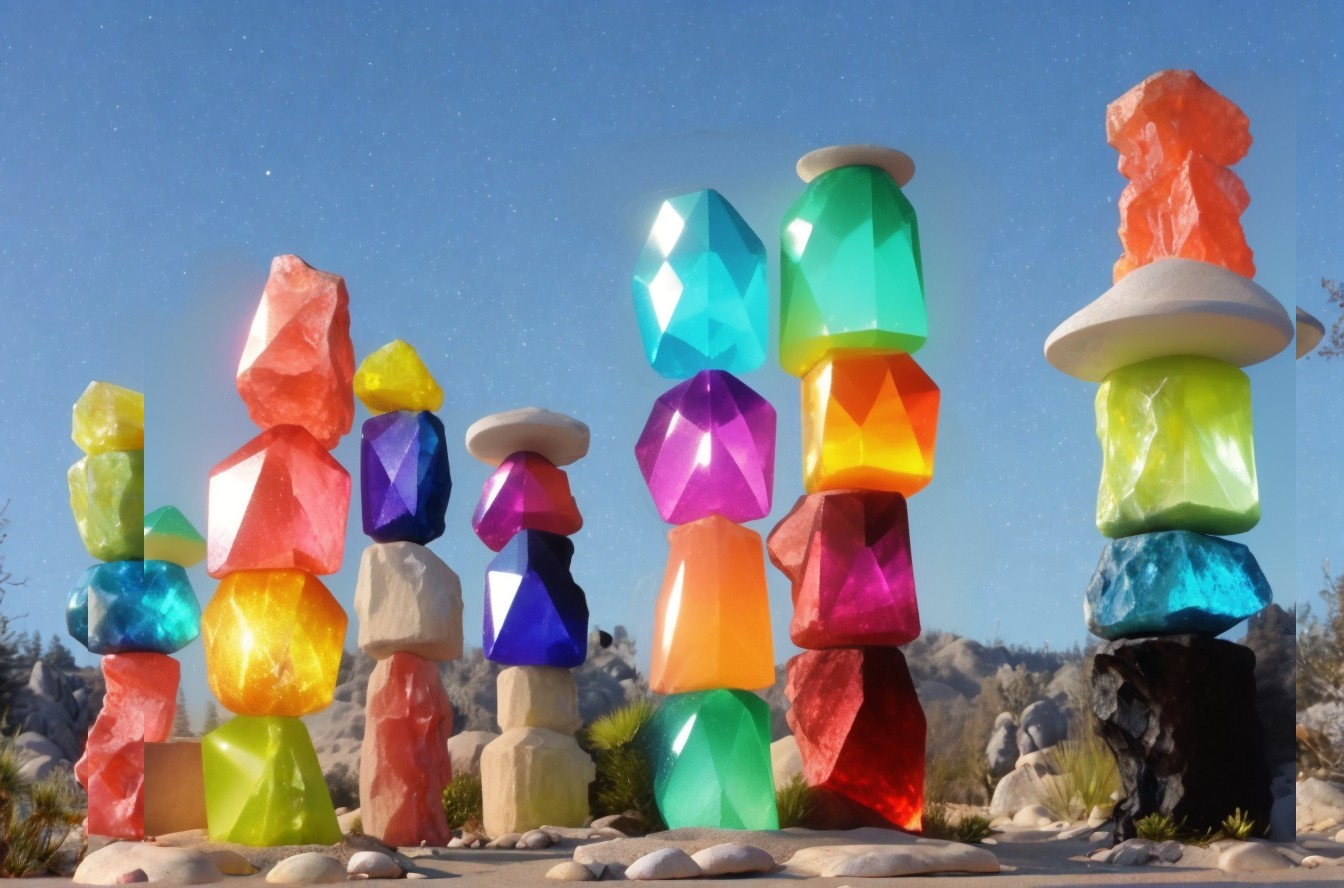 transparent stacked glass rocks, professional backlighting, gaudi, giger, alien zen garden