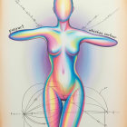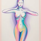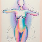 The artwork features a stylized, abstract female figure with smooth lines and vibrant colors, showcasing a blend of pastel hues that emphasize form and fluidity.