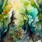 Prompt: Create an abstract oil painting in the style of Josef Kote and Randy Hayashi depicting a bird’s eye view of a dense woodland landscape in the Blue Ridge Mountains. Show brush strokes.