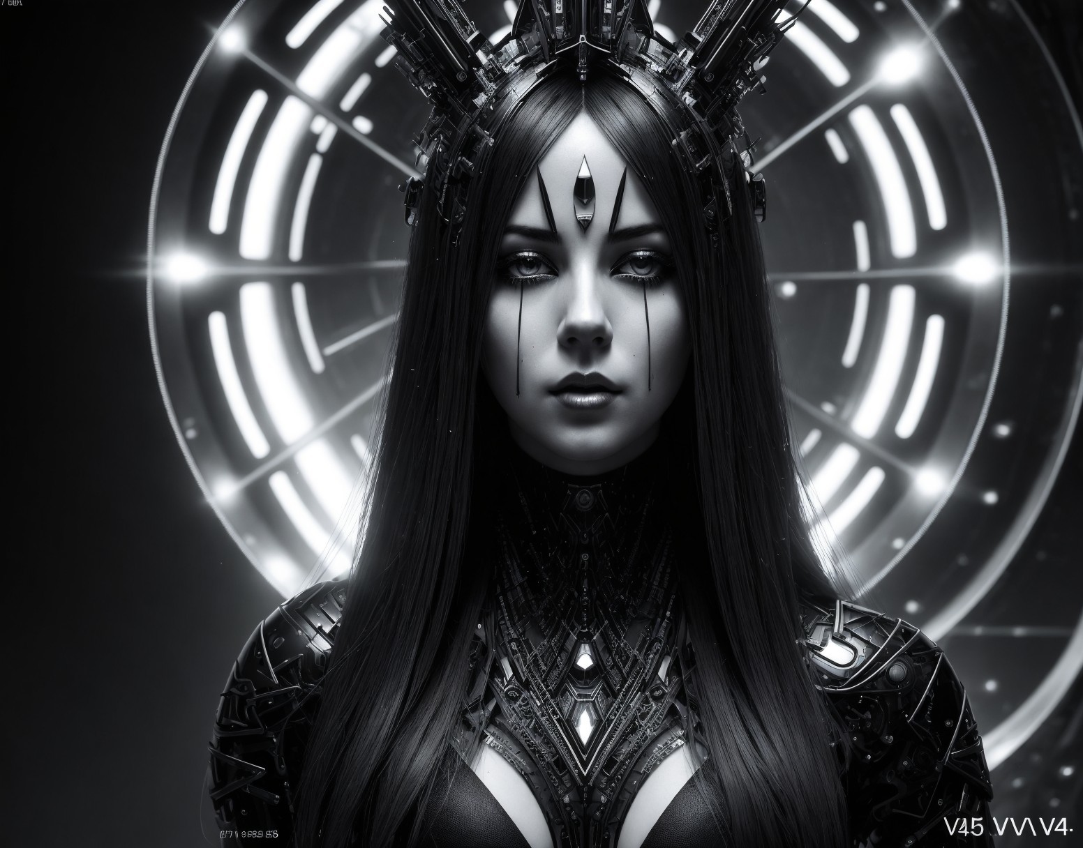 Masterpiece dark age photo impressive, Absolute symmetry, synergetic personality, cursed sensuality, stylized body, , highly technological , artificial intelligence, splatterpunk, cyberspace, digital age, 8k, intricate detailed, hyper-detailed, realistic wash, cinematic lighting, photo, shadow, main colors multicolor in metalasse ornaments( Z = Zm + 1 / Cp) white red gold matte black colors,a misty Sci-fi, Highfuturistic, Psychic powerful,