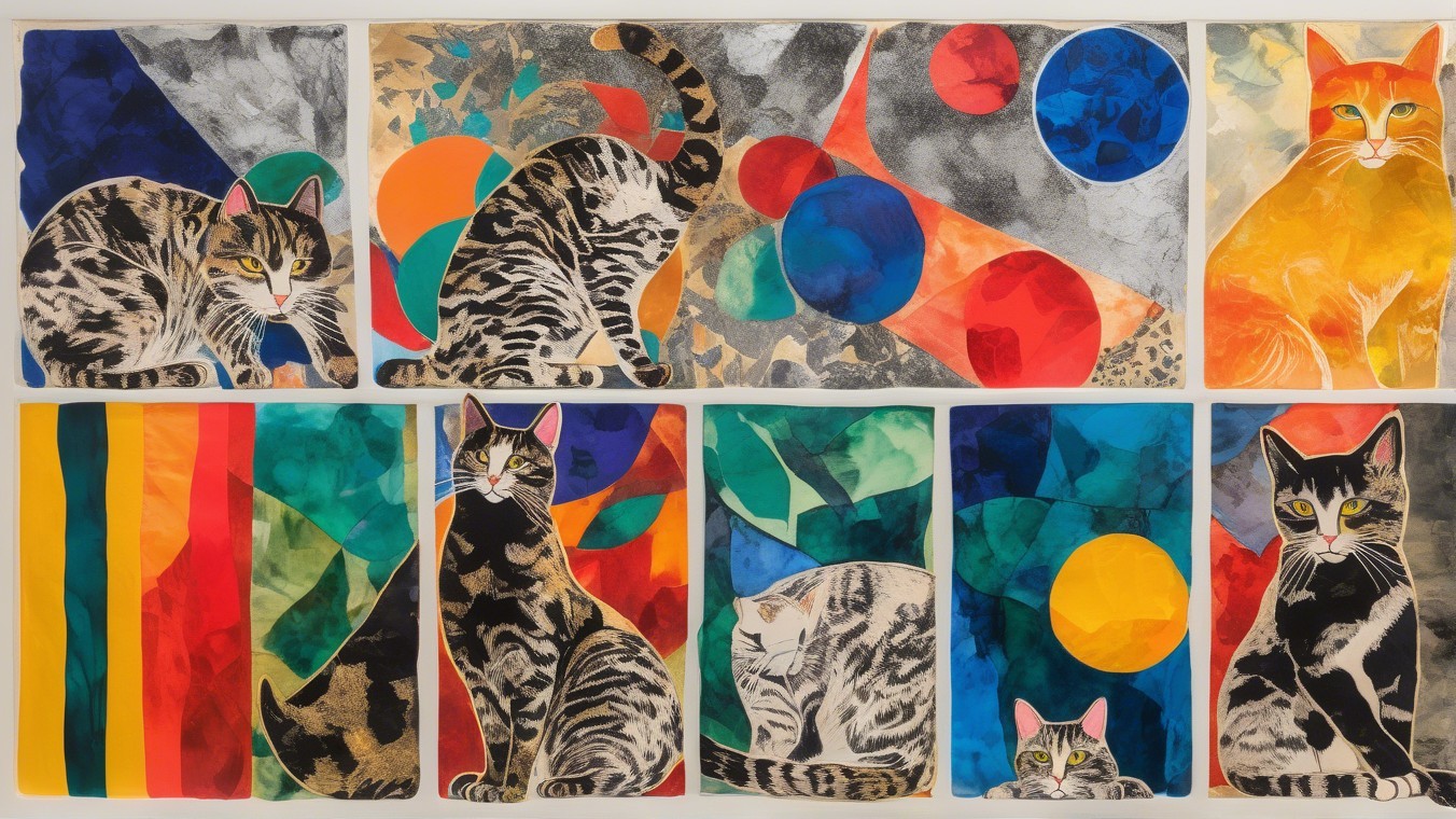 Vibrant Cat Portraits in Colorful Abstract Collage