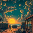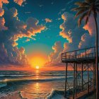 Vibrant Sunset Over Wooden Pier and Gentle Waves