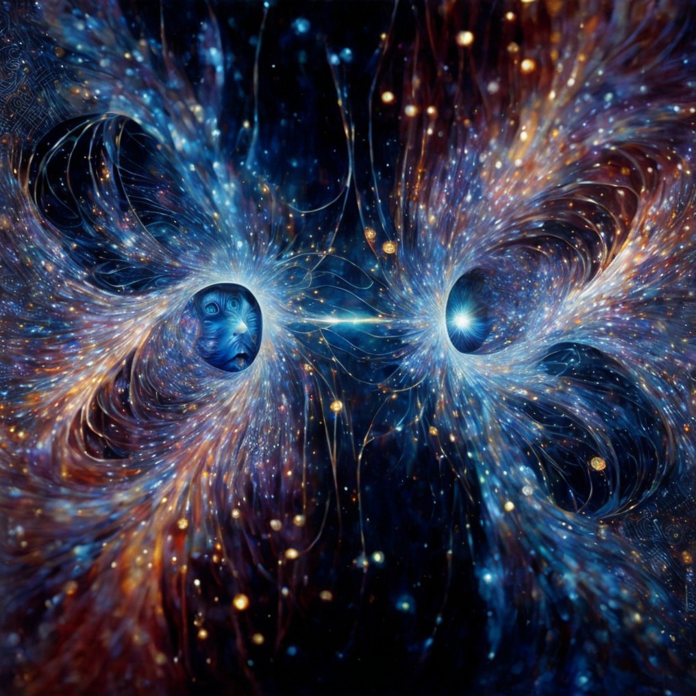 Prompt: "Quantum entanglement is the phenomenon that occurs when a duet of particles are generated, interact, or share spatial proximity in such a way that the quantum state of each particle of the group cannot be described independently of the state of the others, including when the particles are separated by a large distance. The topic of quantum entanglement is at the heart of the disparity between classical and quantum physics: entanglement is a primary feature of quantum mechanics not present in classical mechanics.