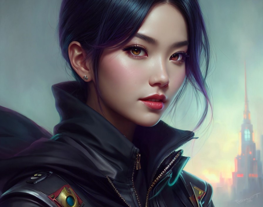 Digital Portrait of a Woman with Purple Hair and Jacket