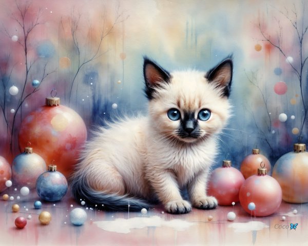 A puppy is sitting on a stone path, the atmosphere is gentle and peaceful.