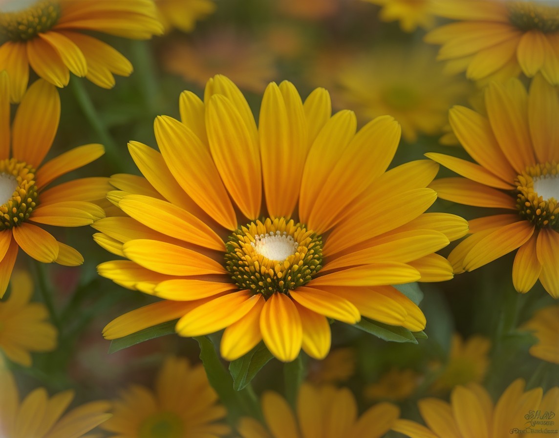 Vibrant Yellow Daisy-Like Flowers Close-Up Shot