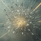 An intense explosion erupts, sending debris and bright sparks in all directions. The scene captures chaos and energy, with fragments of material flying through a blurred, smoky background.