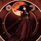 Silhouette of a Witch Against a Vibrant Orange Sun