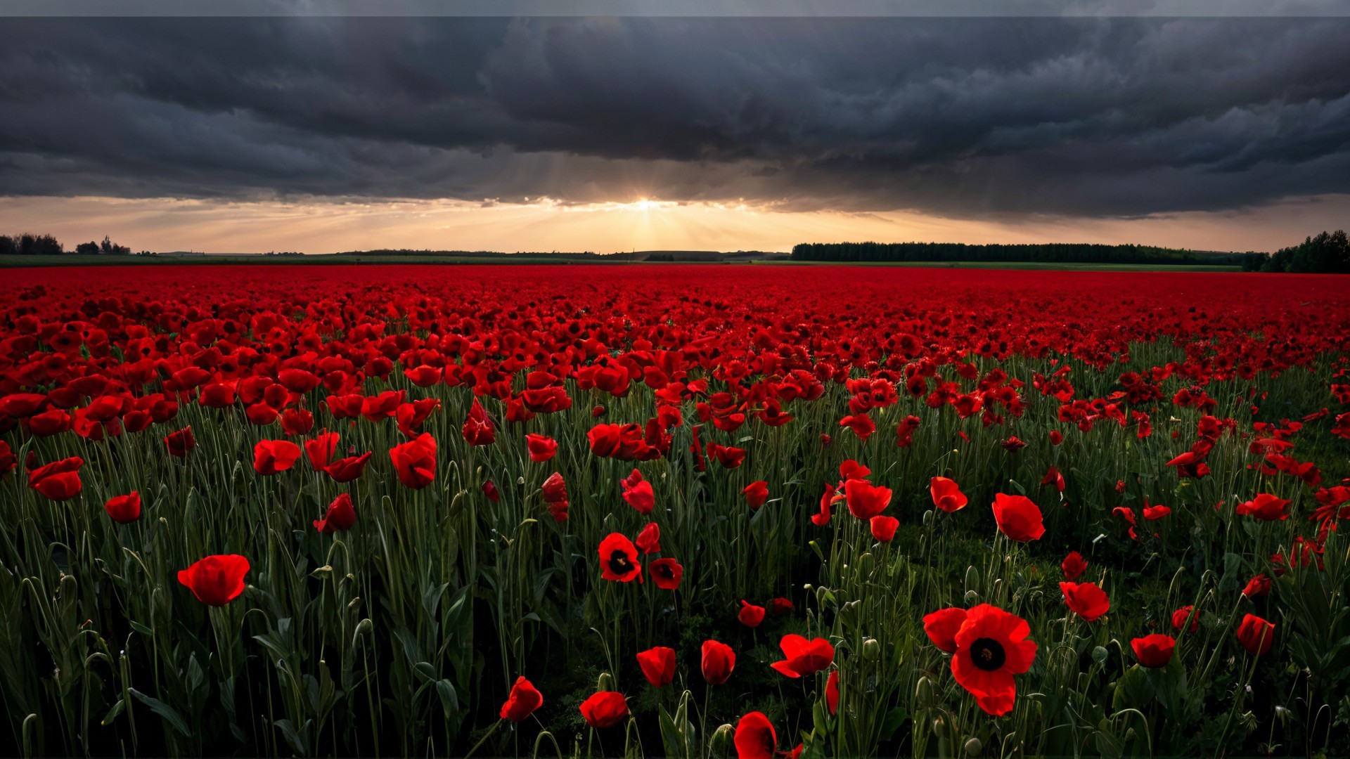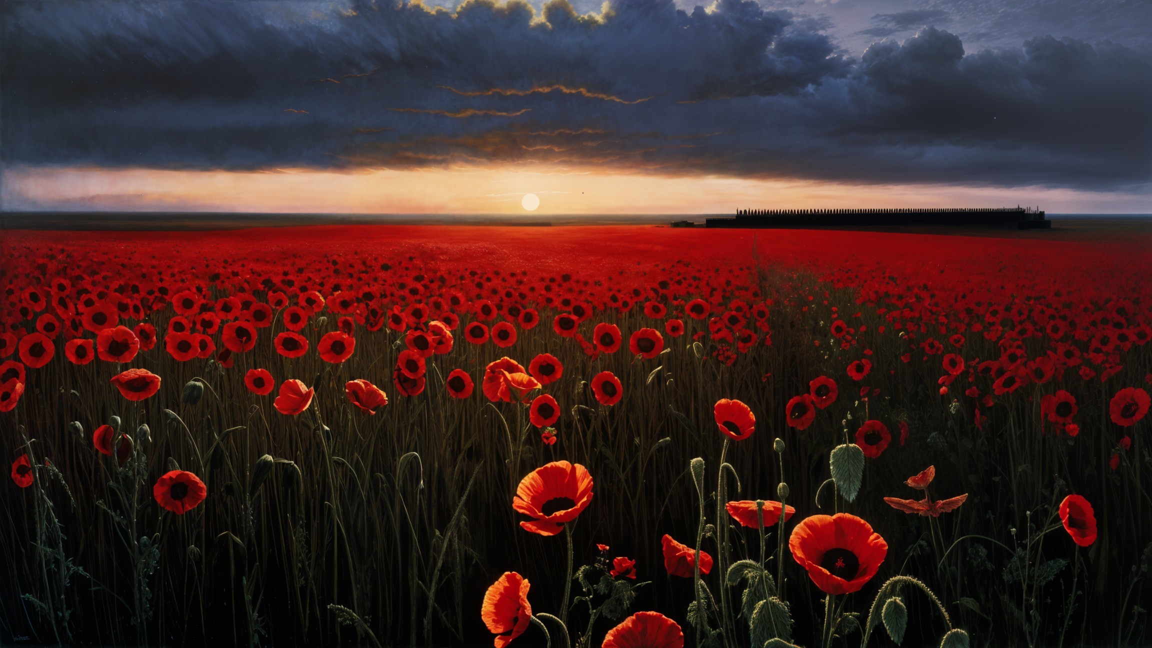 Prompt: "Scarce heard amid the guns below. We are the Dead. Short days ago We lived, felt dawn, saw sunset glow, Loved and were loved, and now we lie, in Flanders fields"