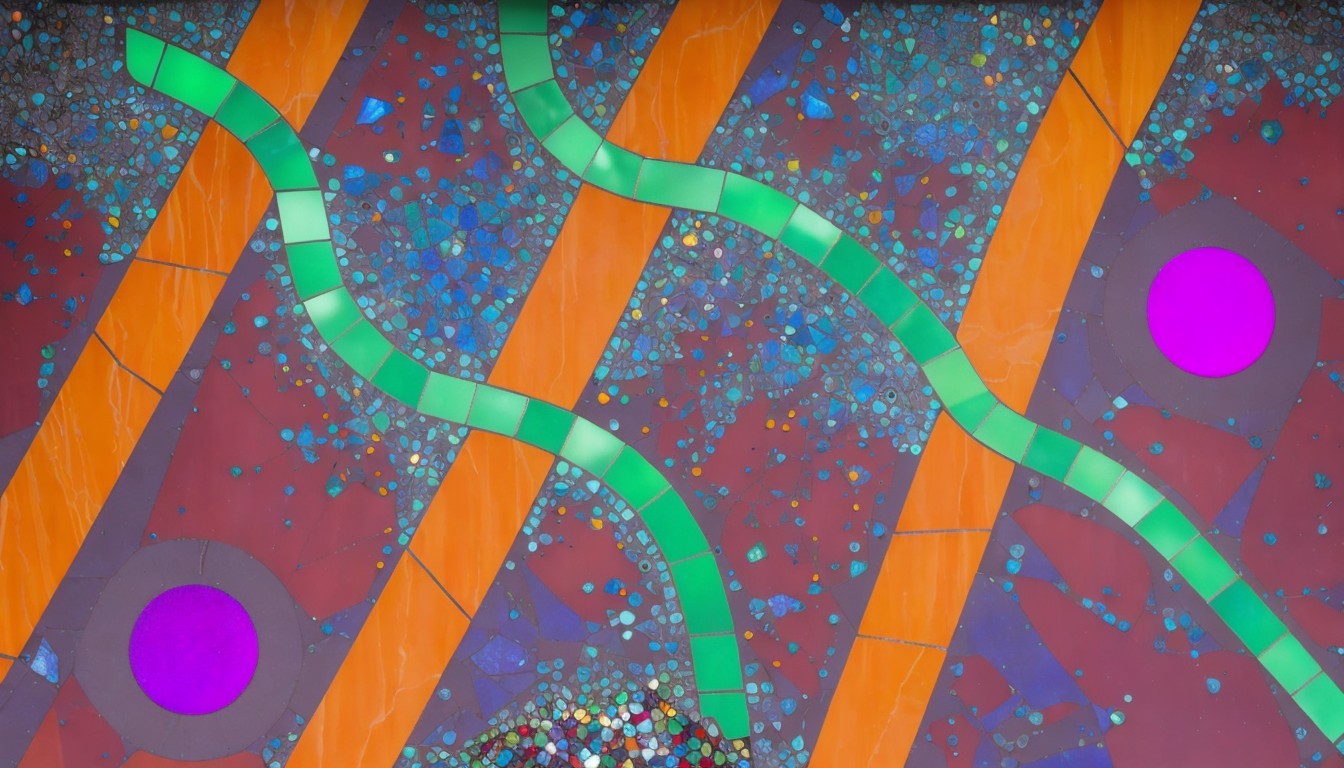 + Prompt:weird mosaic made of steel wire, colorful broken glass, small pieces of wood and marble. By Giger and Moebius. Brutalist monuments on an alien world