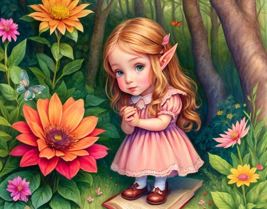 BACIL, pequeña elfa de la tierra floresta, dejo de leer para disfrutar del bosque, ella está aprendiendo magia floral, es la hija menor de una Elfa y un terrestre, un poderoso mago verde.ella es cuidada y protegida por el bosque y sus animales, ella aún no lo sabe pero esta dotada de una fuerte magia que mezclada de los elementos tierra fuego y aire que la convertirá en alguien muy importante en el reino de los elementales.