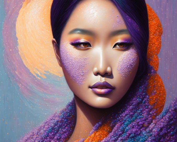 A serene, ethereal woman adorned with flowers and a crown of antlers, surrounded by bees and vibrant blossoms, bathed in soft golden light, evokes nature's harmony and beauty.