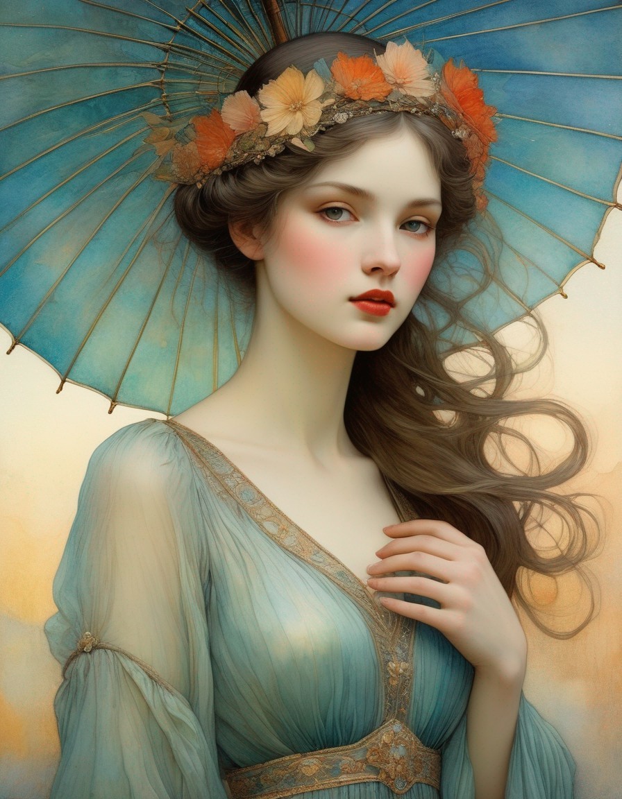 Prompt: Iridescent watercolor and ink By Jamie Heiden, Daniel Merriam, Paul Klee, Karol Bak, Dee Nickerson, extremely detailed, high definition, crisp quality, ultra detailed background art nouveau New Year’s Eve ball.