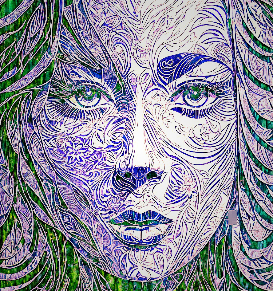 Stylized Portraiture, woodblock print 1.7, dynamic lighting 1.7, triadic color scheme blue black green, Streamline_Moderne, anisotropic filtering 1.7, raytraced shadows 1.2, strict, hazy, eerie, spiritual essence, encaustic strokes, fine lines 1.7, joy, stylized illustration 1.5, vaporous lighting, gorgeous composition 1.9, coffinwood 1.7, dethereal, tints of Igor Zenin and Taras Loboda, very detailed illustration, brightness 1.4, tints of zentangle style, high coloring 1.9, bokeh effects 1.8