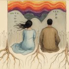 Create an artistic representation of an abstract graph featuring three distinct sections. The background should be a soft beige color, providing a warm, vintage feel. The first section at the top should include a grid pattern made up of black lines, creating a series of squares. Within this grid, incorporate some dynamic, wavy lines and curves, interspersed with small circles representing data points, emphasizing movement and fluctuation. The middle section should include more intricate, organic curves and loops, with scattered dotted lines that exhibit complexity and variability. This area should contrast with the linearity of the grids above and below it. The third section, similar to the first, should also contain a black grid pattern, resembling the same structure, but with additional data points appearing to trace the path of movement. include everywhere circles, spirals, and other abstract motifs, symbolizing alchemy and astronomy. Integrate labels in the top right and bottom right corners, reading "GRAPH-1" and "GRAPH-2," respectively, in a vintage style to maintain the classic aesthetic of the entire piece. This prompt should capture the essence of a scientific graph while allowing for creative interpretation in its illustration. Modifiers: Paul Klee