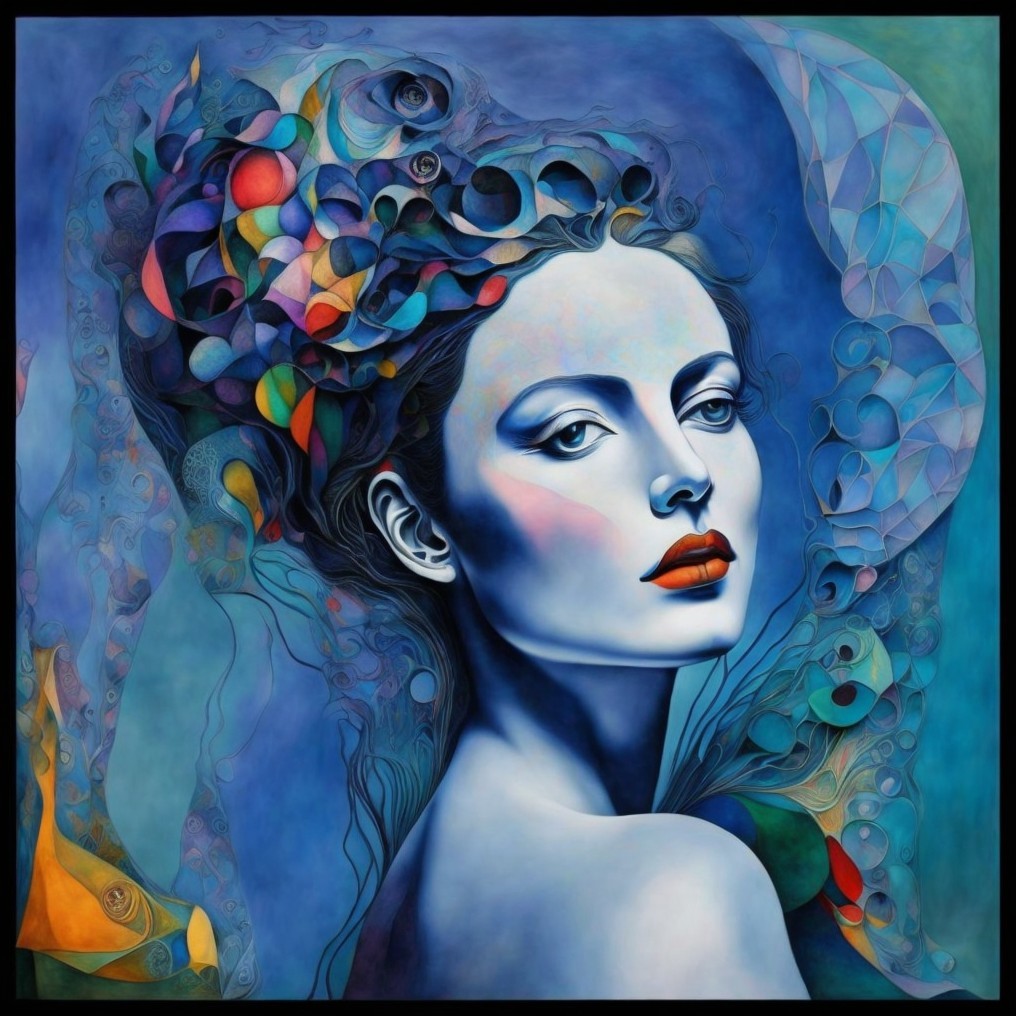 + Prompt:One face, one image, beautiful girl dreamscape, Salvador Dali collaboration Paul Klee and Tim Burton, Picasso's integrated flowing composition, colorized brooding grayscale balanced by many bright colorful details