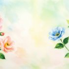 A vibrant watercolor painting featuring delicate flowers in pink, blue, and yellow hues. Soft pastel background adds a dreamy touch, enhancing the beauty of the blossoms and greenery.