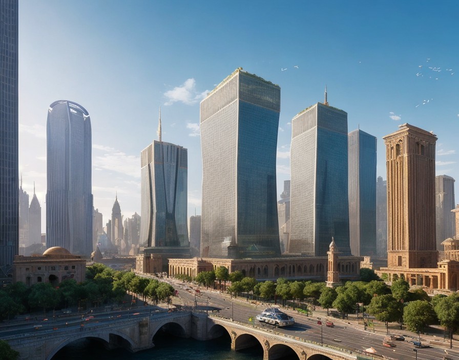 Prompt: "Ancient and modern cityscape, designed by architects from the past, present and future, futuristic architecture, time travel, Roman influence, medieval elements, advanced technology, sustainable design, floating structures, towering skyscrapers, green spaces, flying vehicles, domed structures, aqueducts, holographic displays, robotic assistants, ethereal lighting, bustling streets, diverse cultures, vibrant colors, digital art, intricate details, epic scale, by Zaha Hadid, Frank Lloyd Wright, Santiago Calatrava, futuristiccitydesigns.com, high resolution."