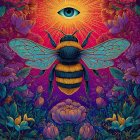 Vibrant Bee Above Blooming Roses in Lush Garden