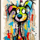 The artwork features a vibrant, abstract figure surrounded by colorful shapes and patterns. Elements of nature blend with whimsical designs, creating a dynamic and eye-catching composition.