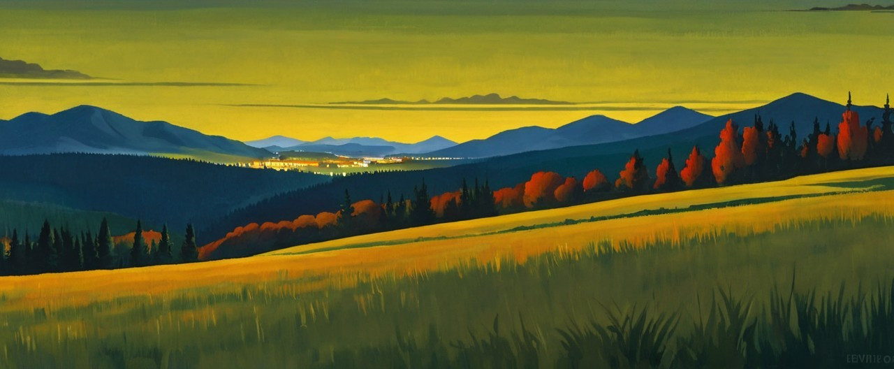 Title : " Leaving My Hometown Behind : a Landscape at Sunset (Miscellaneous Landscape #94)" ©2025 A.J. Jones.