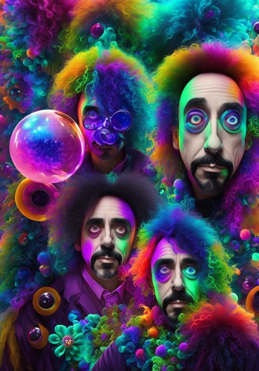 Colorful surreal portraits with cosmic-themed afros in space background.