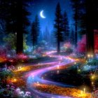 Twilight Cobblestone Path in a Serene Forest