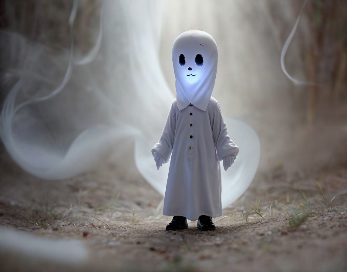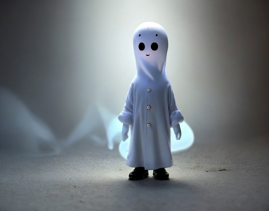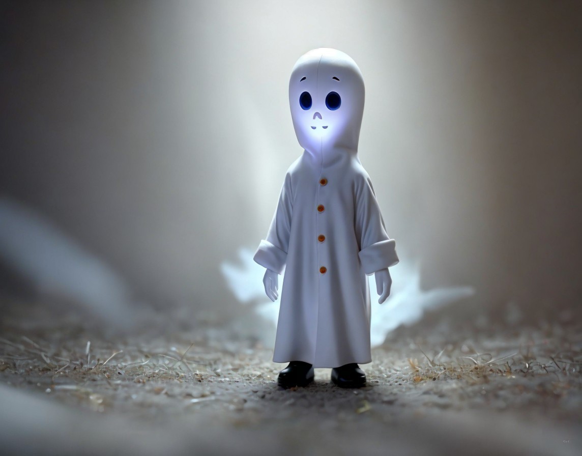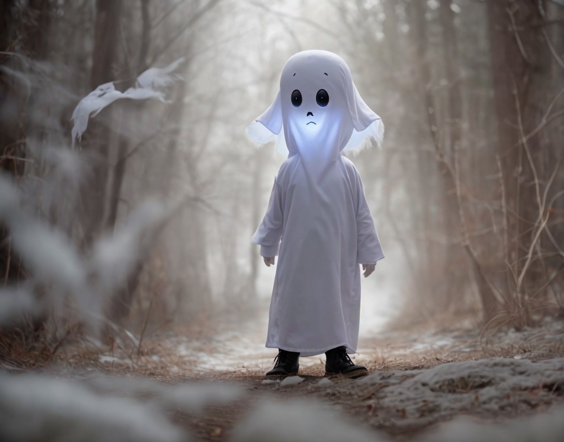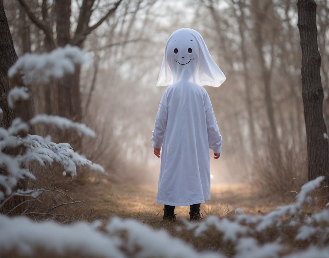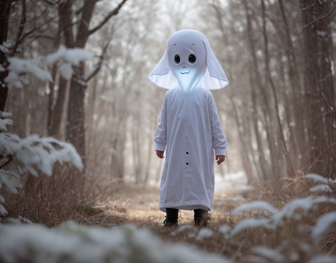 Ghost Figure in Snowy Forest with Whimsical Arm
